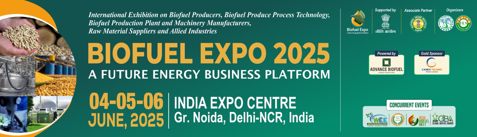 Biofuel Expo 2025 is an International Trade Exhibition on Biofuel (Biodiesel, Ethanol, Biogas, Hydrogen) Manufacturing Process & Technology, Plant Machinery, Biofuel Sustainable Products, Equipment, Raw Materials & Allied Industries is being held 04,05,06 June 2025, at India Expo Centre, Greater Noida, U.P. (India) organized by Green Society of India & Indian Exhibition Services Read More |